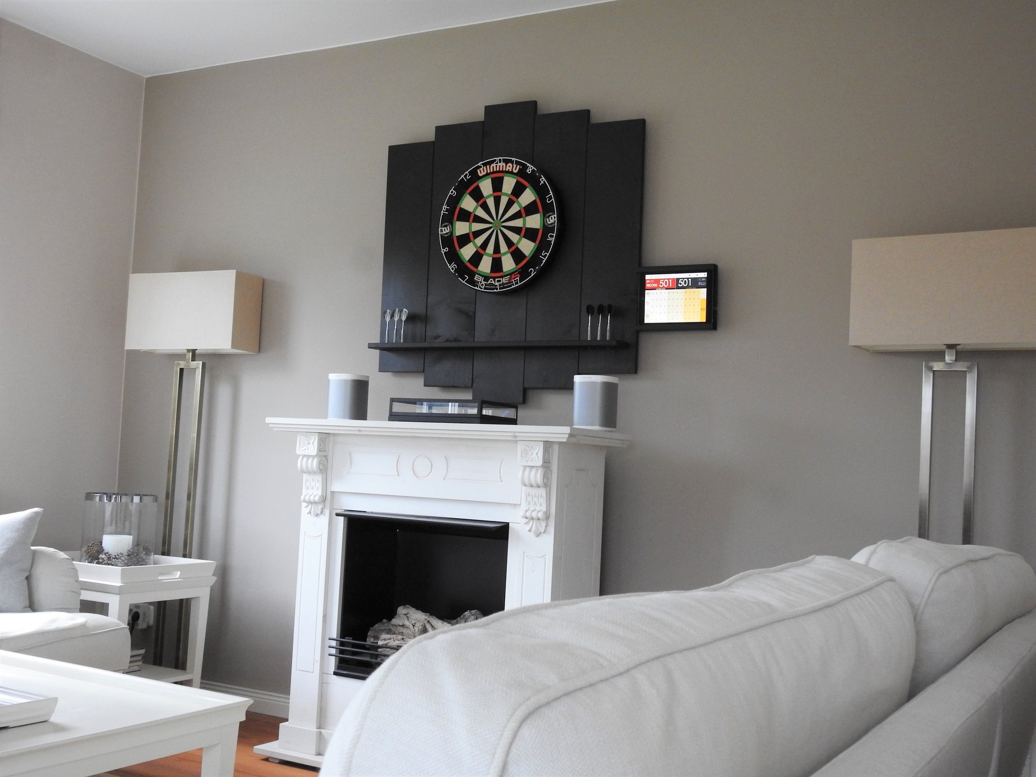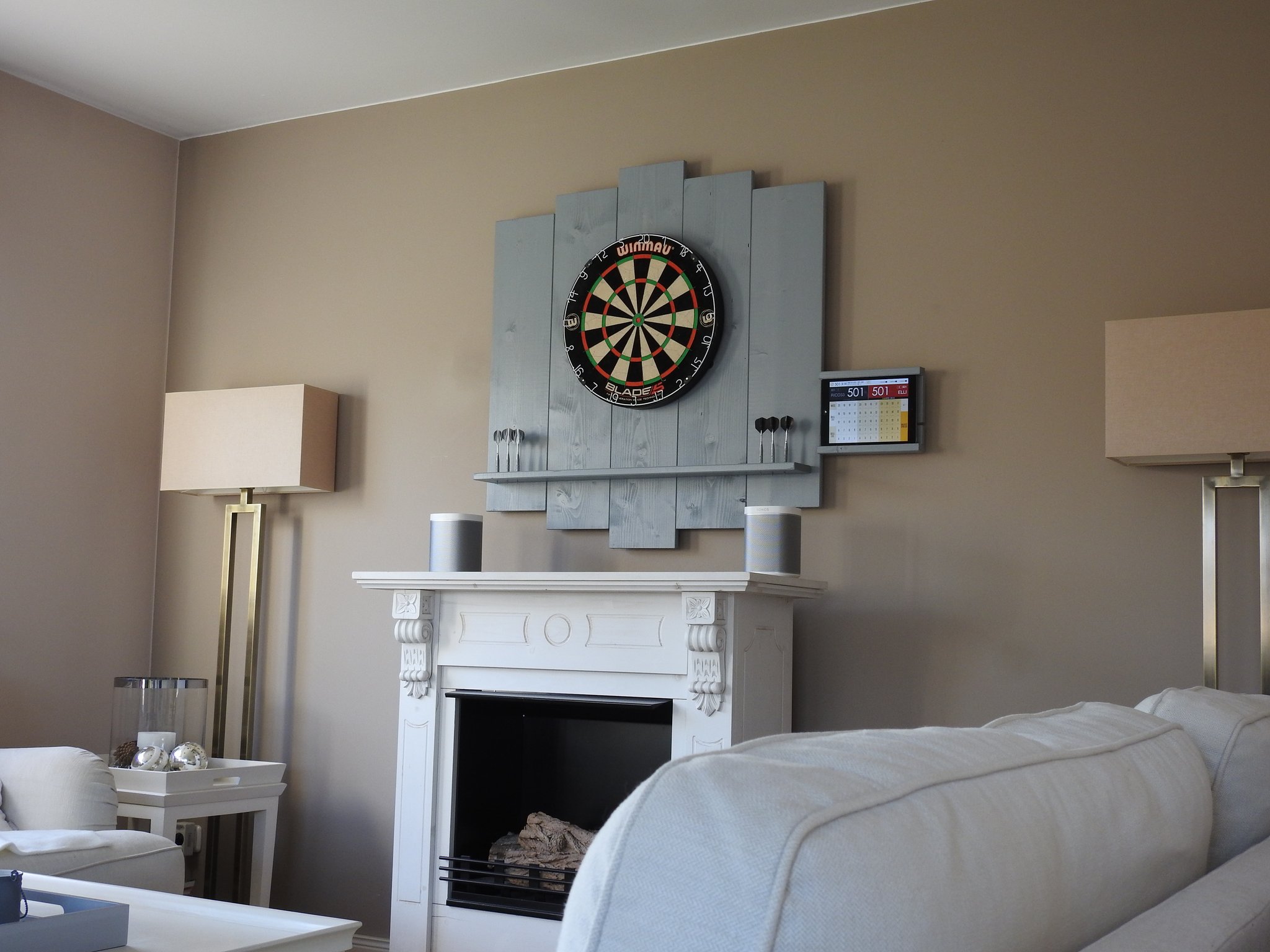 Der eigentliche aber gleichzeitig optionale Clou ist der seitliche Tablet-Halter wenn Ihr das Spiel über eine Dart App (z.B. Dartsmind oder Dart Scorer 180) bevorzugt...
