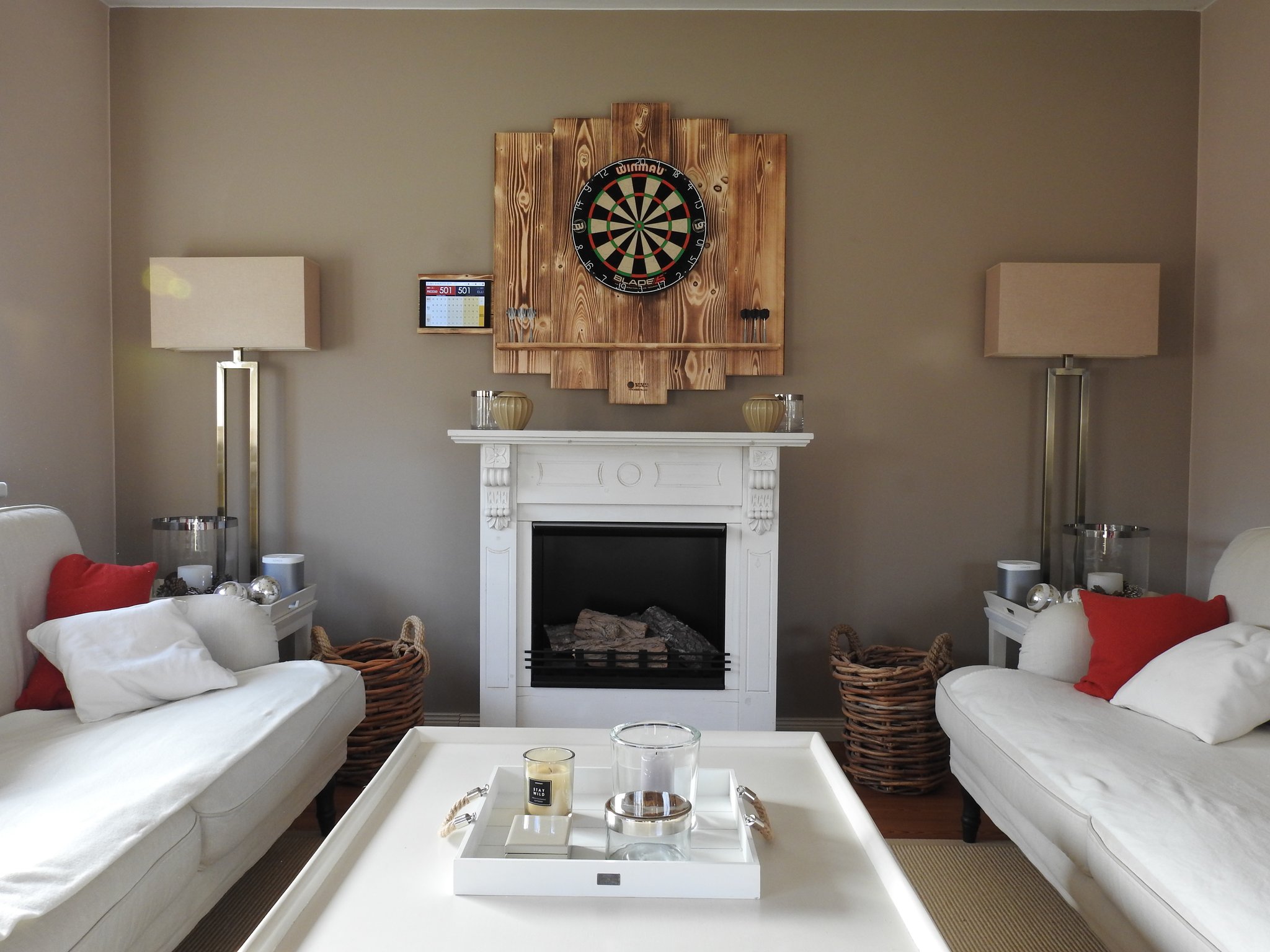 Wir bieten dir unseren Dart-Wandschutz ab Manufaktur in zwei grundlegenden Designvarianten an. Neben dem BurnedLook kannst du dich für das Color Design entscheiden. Doch damit nicht genug: Möchtest du neben der Dartscheibe auch dein Tablet nutzen, präsentieren wir dir passend zu unserem Wandschutz noch eine Tablet-Halterung. Auch diese wird aus Holz hergestellt und ist damit besonders stilvoll & im Einklang mit unseren Surround gestaltet.